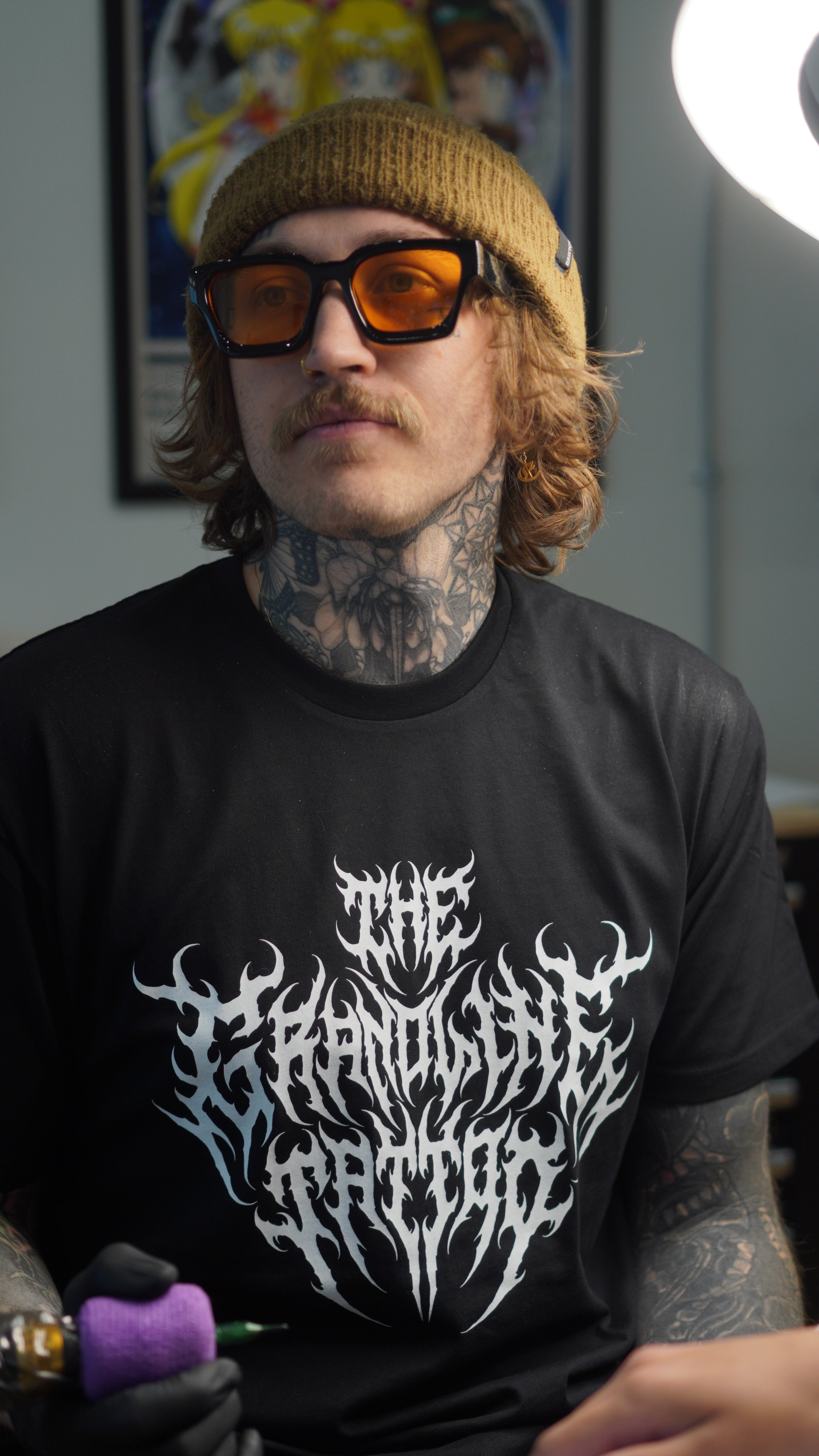 THIS IS A PRE-ORDER ITEM AND WILL SHIP LATE JUNE-EARLY JULY Welcome our new shop shirt with our name in a deathcore-style typeface. Locally made in Indianapolis with 100% cotton, this relaxed-fit unisex shirt is designed for the studio, the street, and the show.